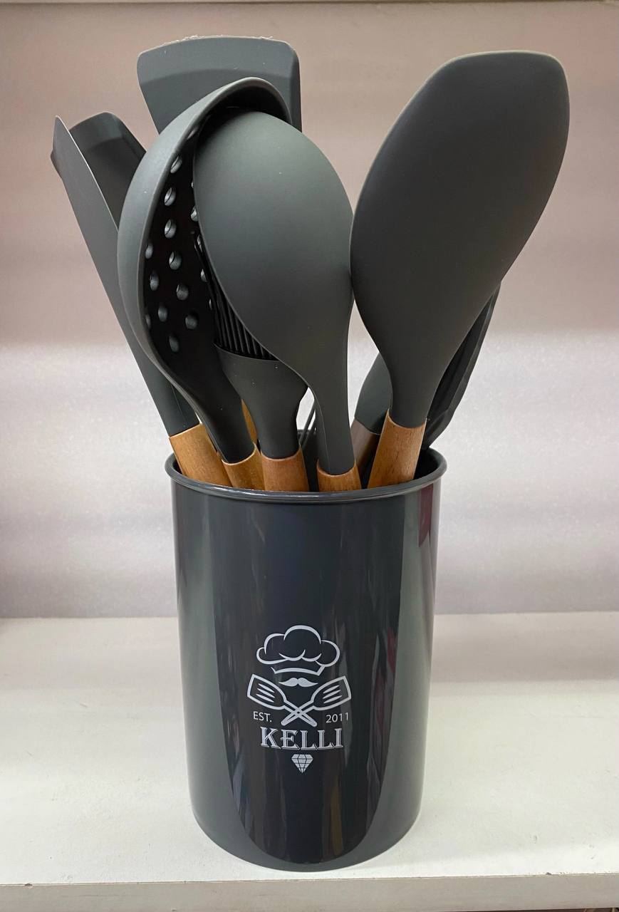 Набор силиконовых кухонных принадлежностей бренда состоит из 11 предметов, включая стакан для хранения. Набор лопаток для кухни изготовлен из экологически чистых материалов - бамбука и пищевого силикона. Пищевой силикон обладает антипригарным покрытием, которое не оставляет царапин и повреждений на поверхности посуды и выдерживает температуру до +230 С. Эта силиконовая посуда для приготовления пищи не гнется, не ржавеет, не впитывает цвета или запахи. На кухонные принадлежности из силикона не налипает пища и их очень легко мыть в проточной воде.